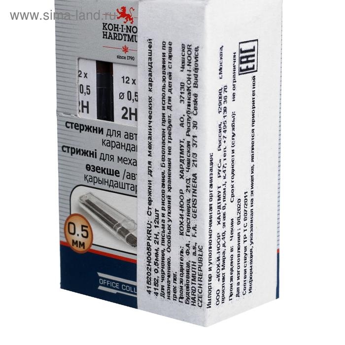 Грифели для механических карандашей 0.5 мм, Koh-I-Noor 4152 2Н, 12 штук, в футляре