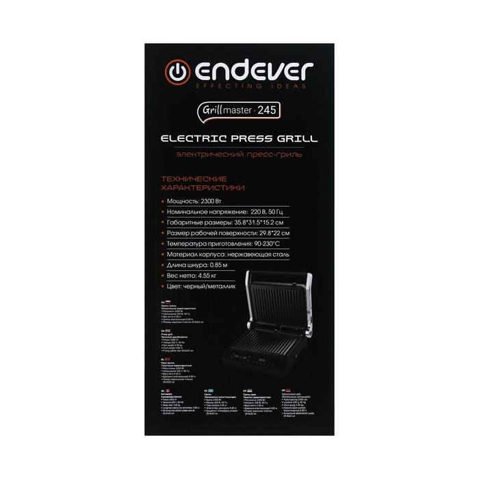 Гриль электрический Endever Grillmaster245, 2300 Вт, антипригарное покрытие, 30х22 см, серый 1052646