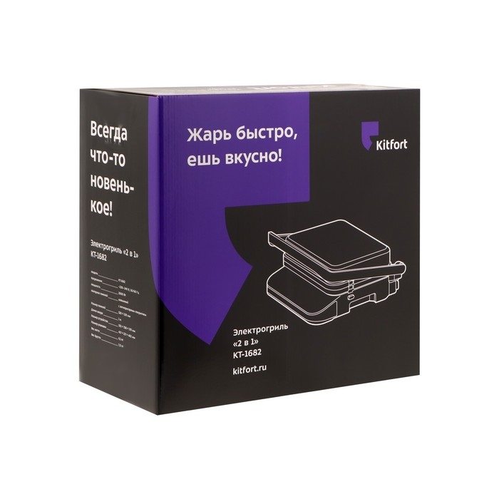 Гриль электрический Kitfort КТ-1682, 2000 Вт, антипригарное покрытие, 32х22 см, чёрный