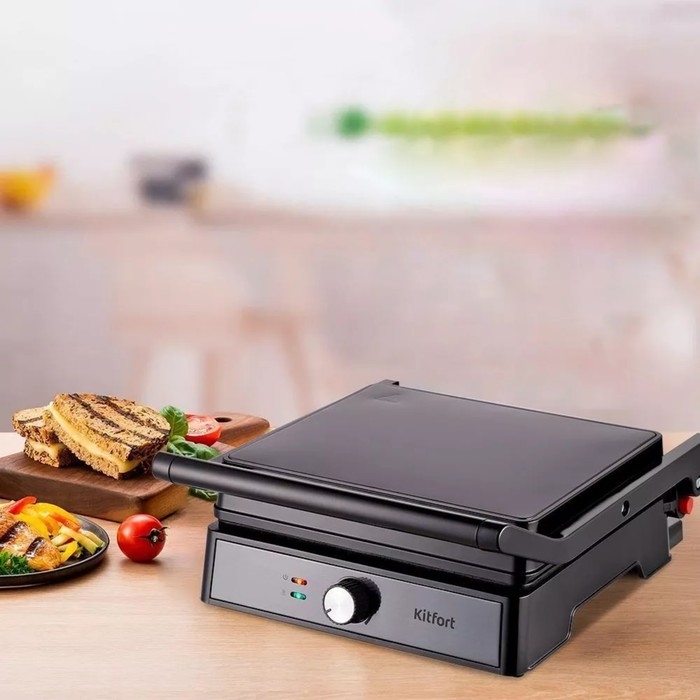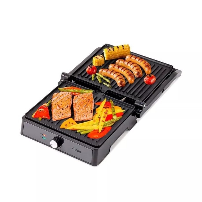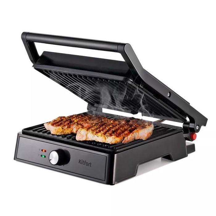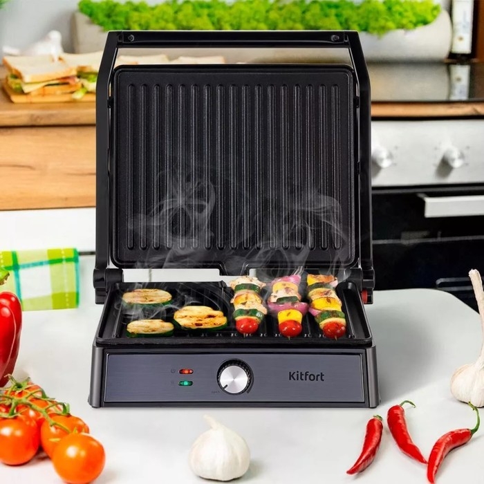Гриль электрический Kitfort КТ-1699, 2000 Вт, антипригарное покрытие, 29х24 см, чёрный