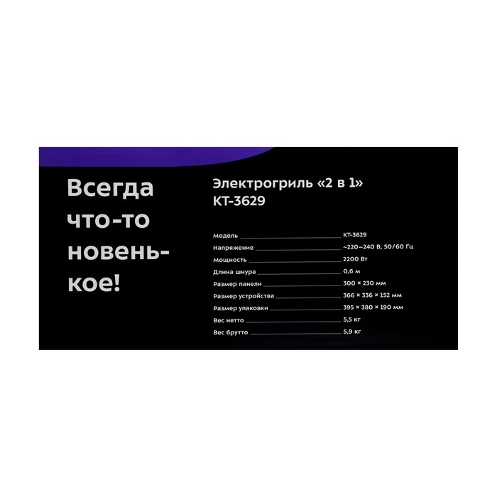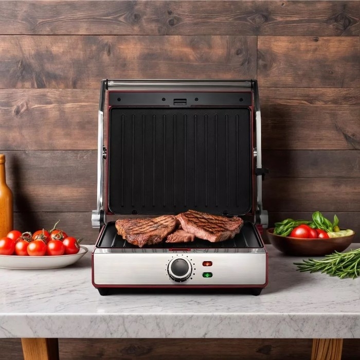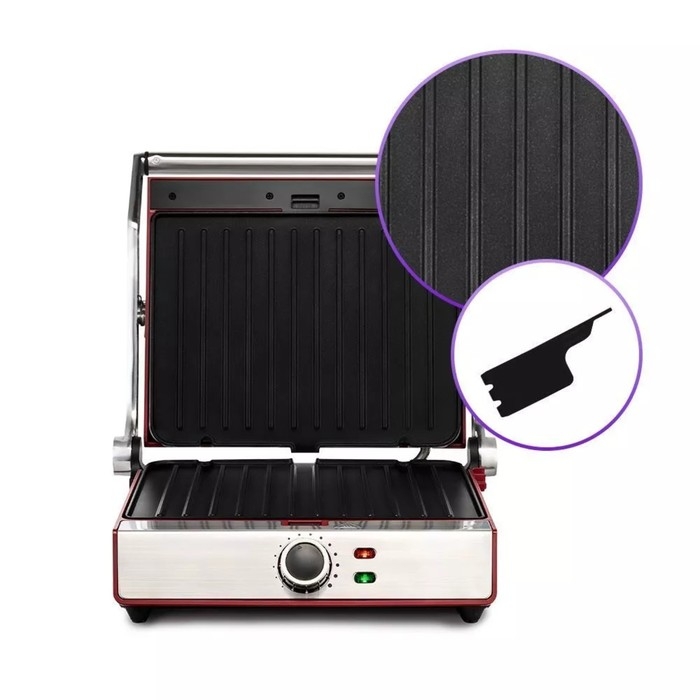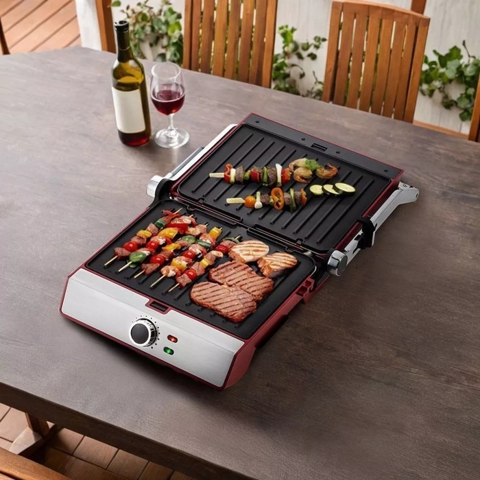 Гриль электрический Kitfort КТ-3629, 2200 Вт, антипригарное покрытие, 30х23 см, красный