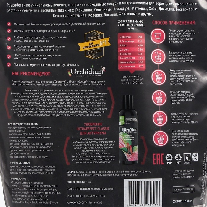 Грунт премиальный для выращивания Спатифиллумов UltraEffect Plus Expert, 3 л