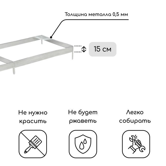 Грядка оцинкованная, 585 × 100 × 34 см, Greengo
