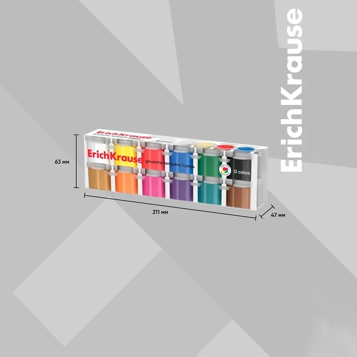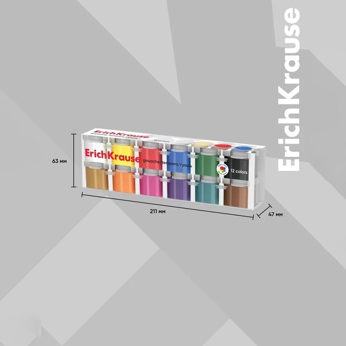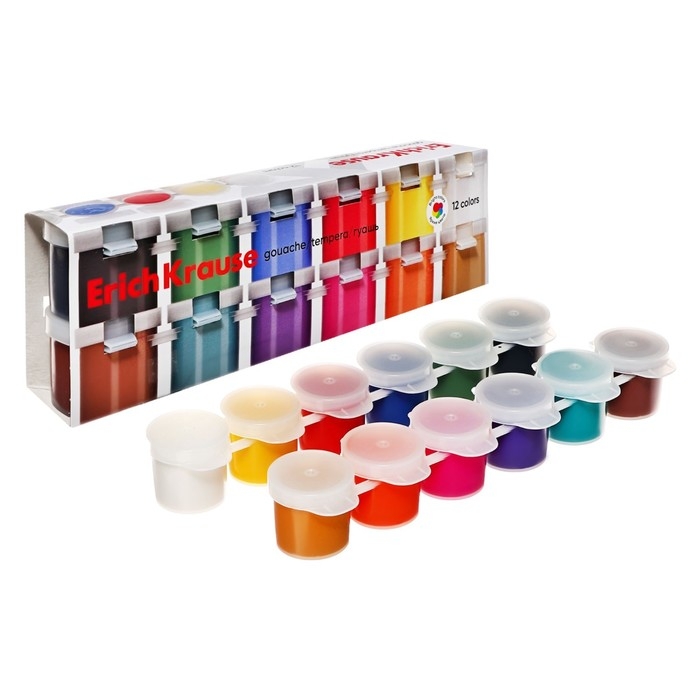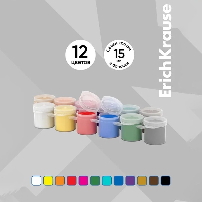 Гуашь 12 цветов х 15 мл ErichKrause, экстра матовые цвета насыщенные цвета, эконом упаковка