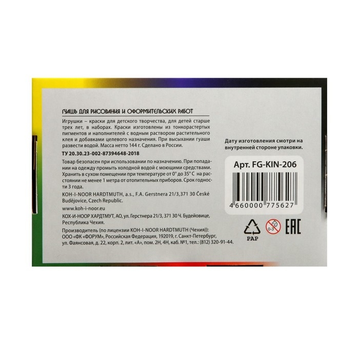 Гуашь 6 цветов х 25 мл, Koh-I-Noor, в картонной коробке