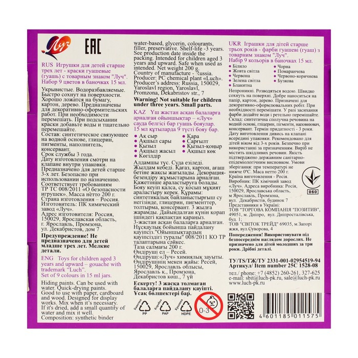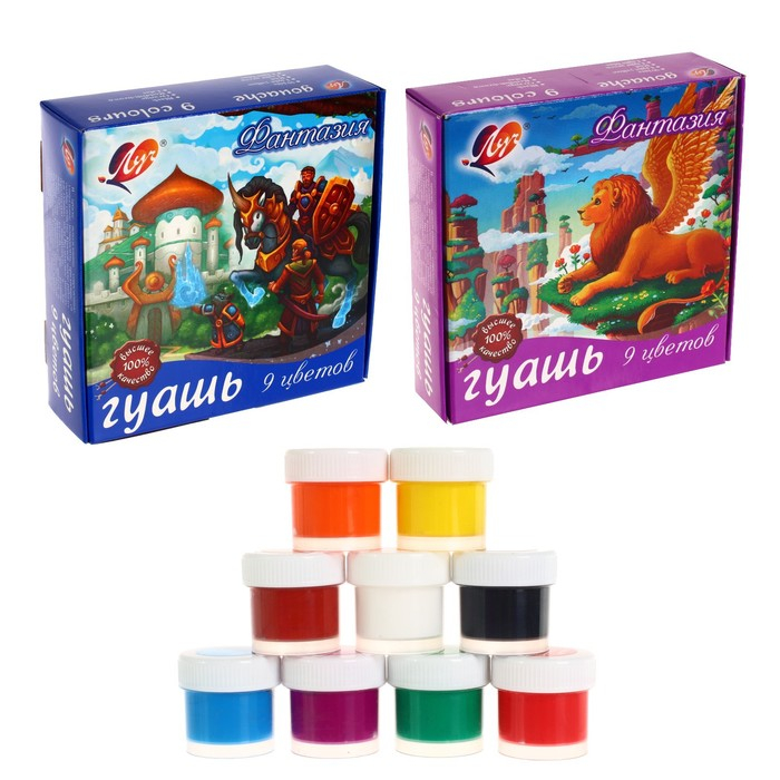 Гуашь 9 цветов х 15 мл "Фантазия", МИКС