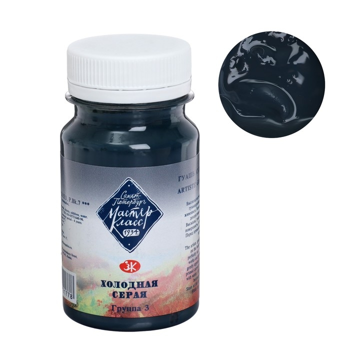 Гуашь художественная в банке 100 мл, ЗХК "Мастер класс", холодная серая (1727823)