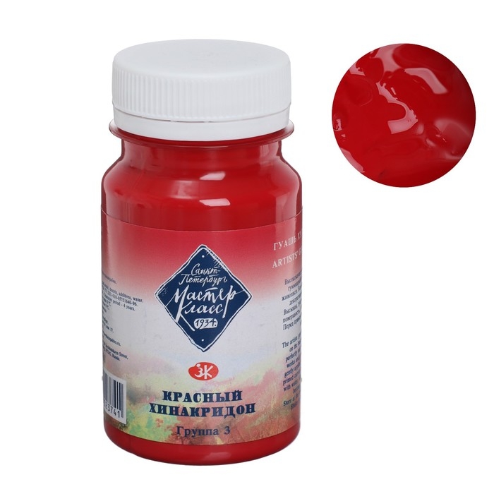 Гуашь художественная в банке 100 мл, ЗХК "Мастер класс", красный хинакридон (1727361)