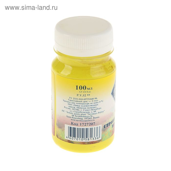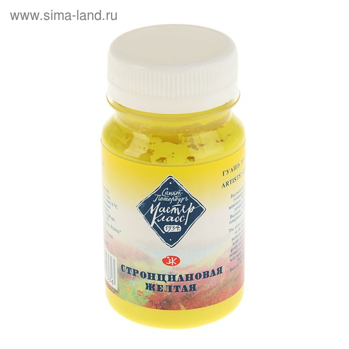 Гуашь художественная в банке 100 мл, ЗХК "Мастер класс", стронциановая жёлтая (1727207)