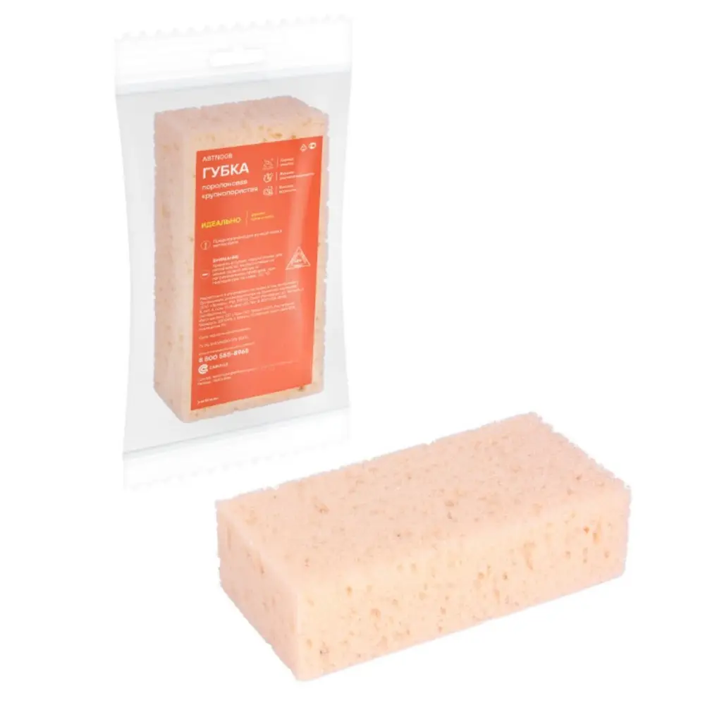 Губка поролоновая крупнопористая предназначена для ручной мойки автомобиля. Обладает повышенной прочностью, высокой влаговпитываемостью, хорошо пенится.