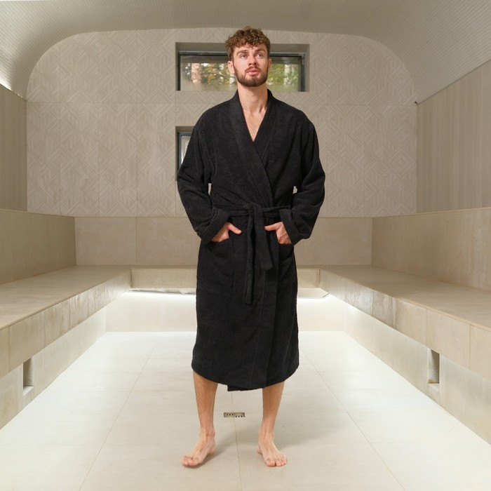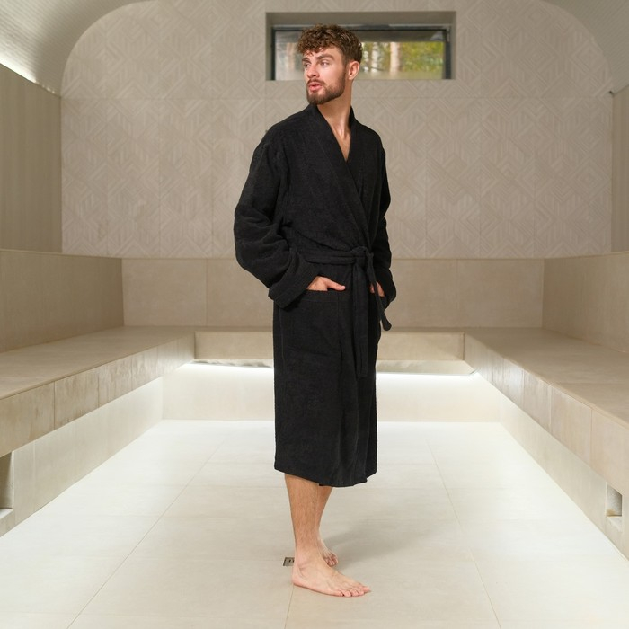 Халат махровый Экономь и Я, мужской размер 48-50 цвет чёрный, 100% хлопок с AIRO, 320 г/м2