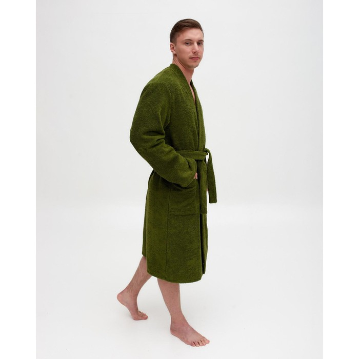 Халат махровый Экономь и Я, мужской размер 48-50 цвет хаки, 100% хлопок с AIRO, 320 г/м2