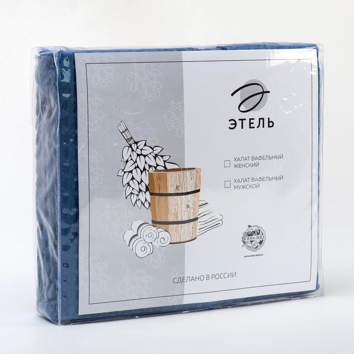 Халат вафельный мужской удлиненный Этель "Boho" размер 54-56, цвет синий, 100% хлопок, 290 г/м2