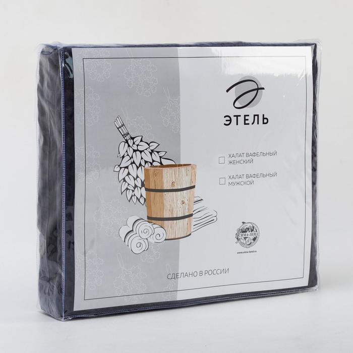Халат вафельный мужской удлиненный Этель "Boho" размер 54-56, цвет тёмно-серый, 100% хлопок, 290 г/м2
