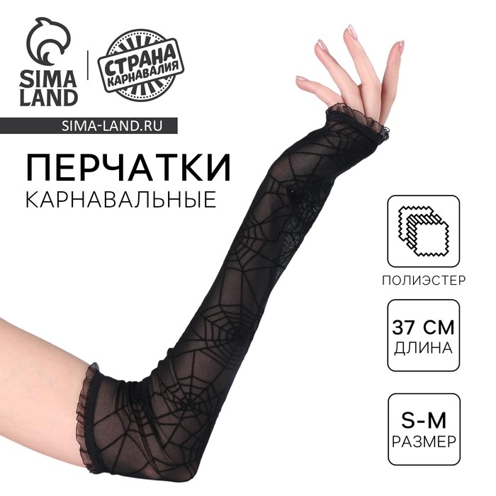 Хэллоуин. Перчатки без пальцев «Аниме», цвет чёрный, паутина