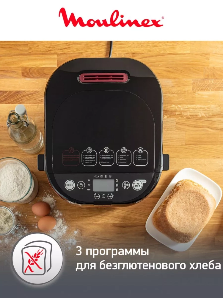 Хлебопечка Moulinex Pain & Plaisir OW220830. Домашний хлеб c хрустящей корочкой - просто и вкусно. Мультифункциональная хлебопечка от Moulinex поможет вам легко приготовить ароматный домашний хлеб и не только.