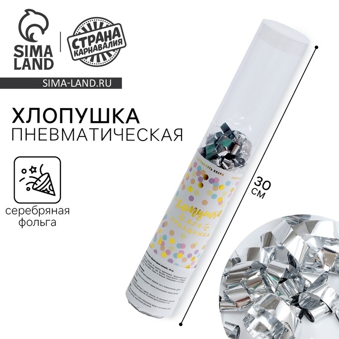 Хлопушка пневматическая «Яркий взрыв эмоций», 30 см, цвет серебряный