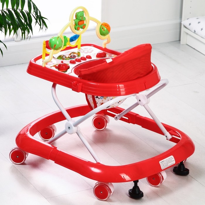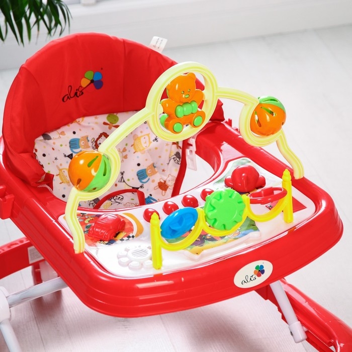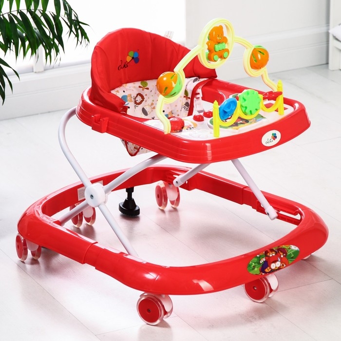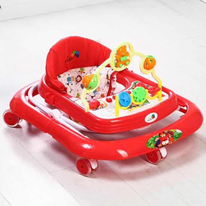 Ходунки «Забава», 8 силик. колес, муз., свет, игрушки, красный