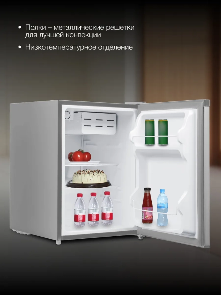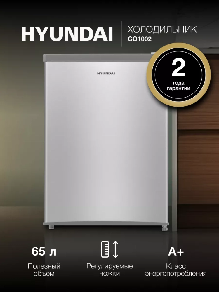 Холодильник Hyundai CO1002 серебристого цвета с низкотемпературным отделением (НТО) органично впишется в интерьер офиса, гостиничного номера или может использоваться в качестве барного оборудования.