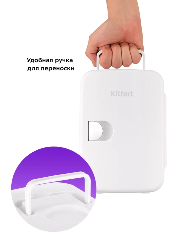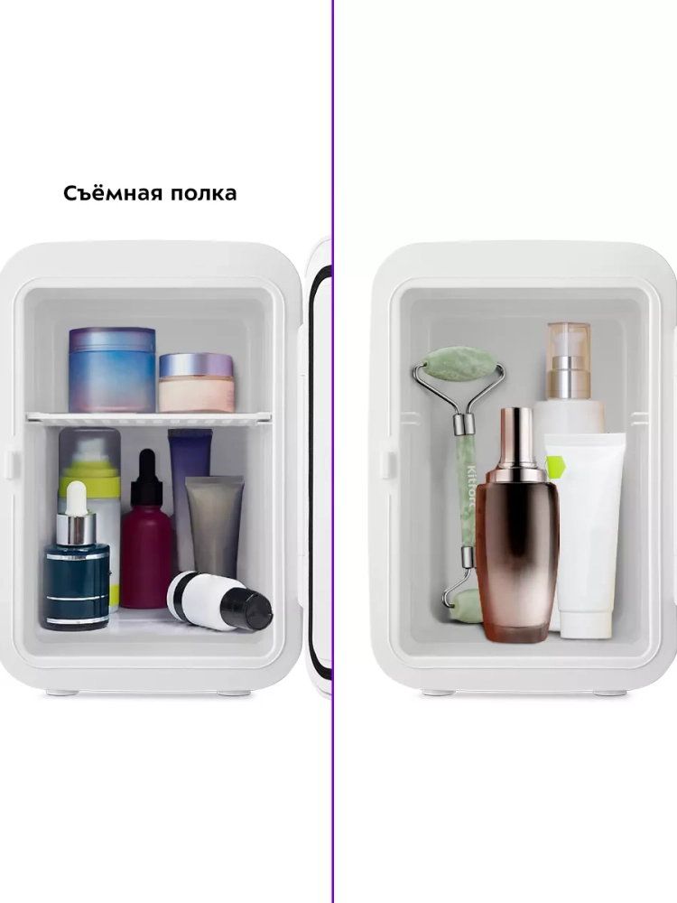 В холодильнике для косметики Kitfort KT-3160 поддерживается оптимальная температура для хранения косметических средств: кремов, сывороток, лосьонов, масок. Благодаря наличию сетевого и автомобильного шнура в комплекте вы можете использовать холодильник дома или взять его в поездку на машине. Полка холодильной камеры позволит вам рассортировать косметику.