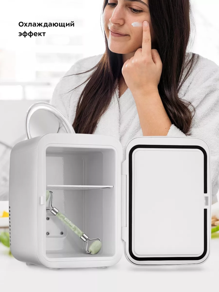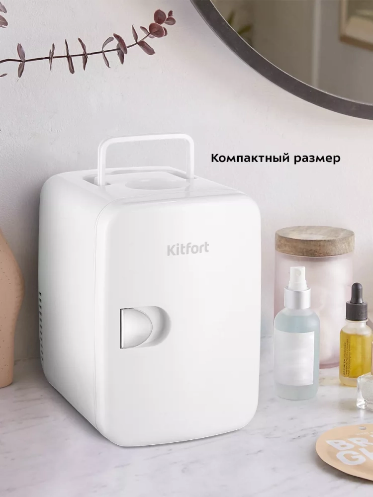 Холодильник для косметики KT-3160 обладает компактными размерами, так что вы сможете поставить его на туалетный столик или в ванную комнату.