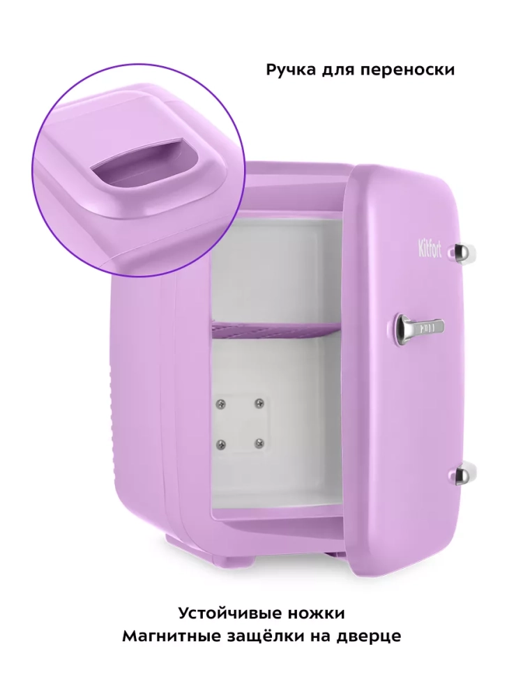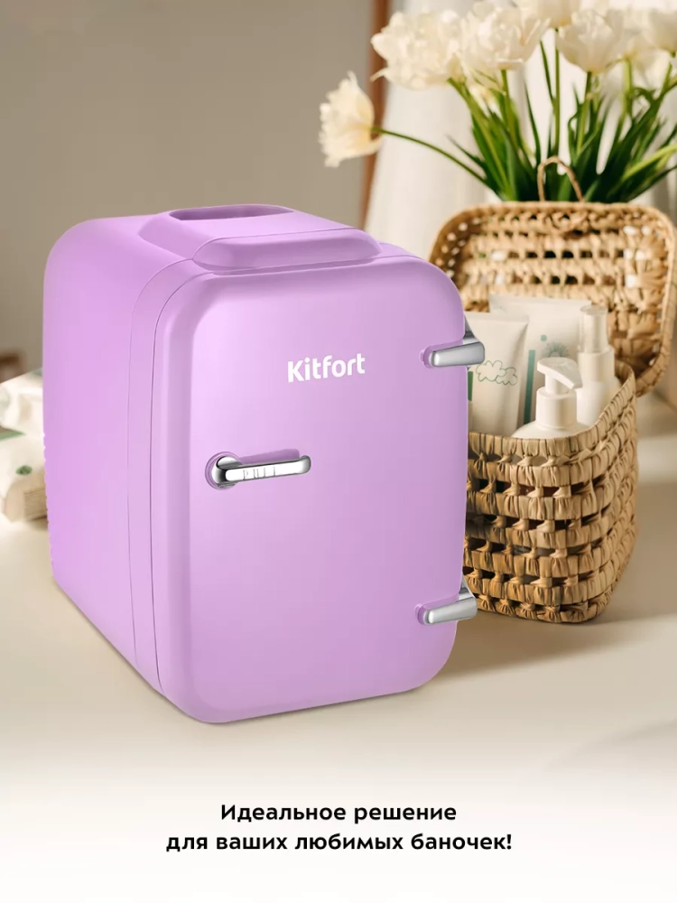 Холодильник для косметики Китфорт KT-3163 легкий и обладает компактными размерами, так что вы сможете поставить его на туалетный столик или в ванную.