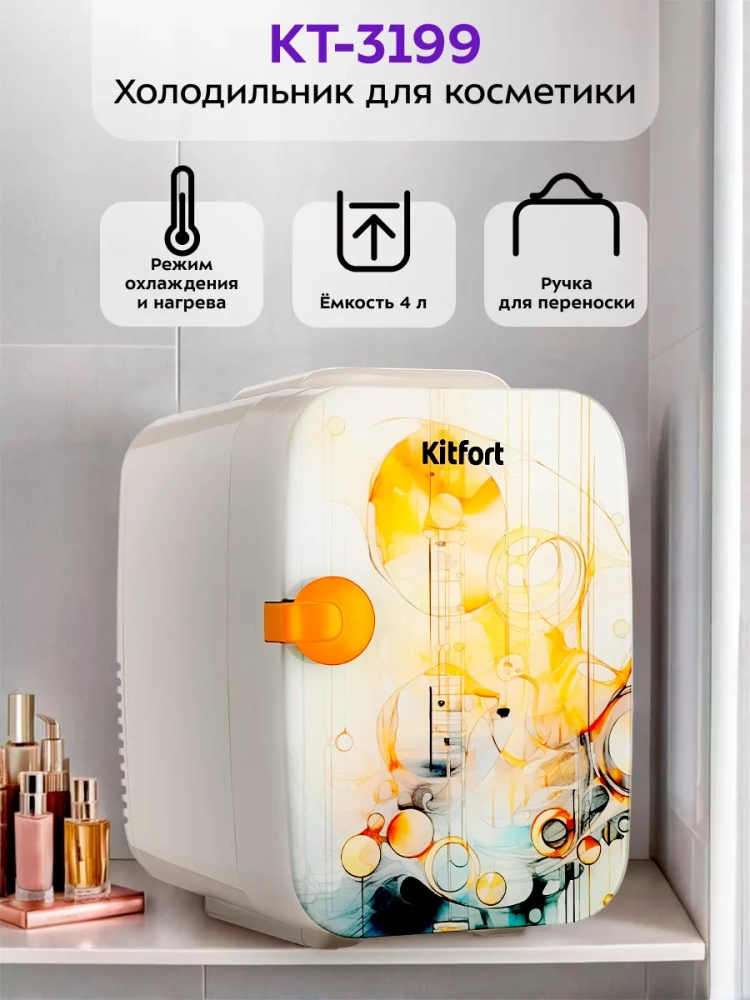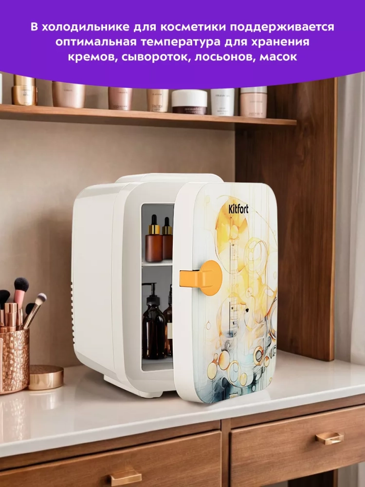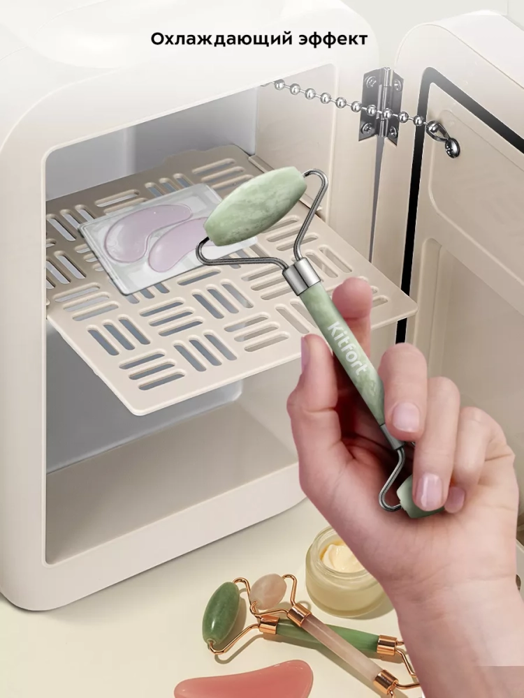 В холодильнике для косметики Kitfort KT-3199 поддерживается оптимальная температура для хранения косметических средств: кремов, сывороток, лосьонов, масок. Также у устройства есть режим нагрева, который подойдет, например, для разогрева восковых полосок, специальных масел или масок перед их использованием.