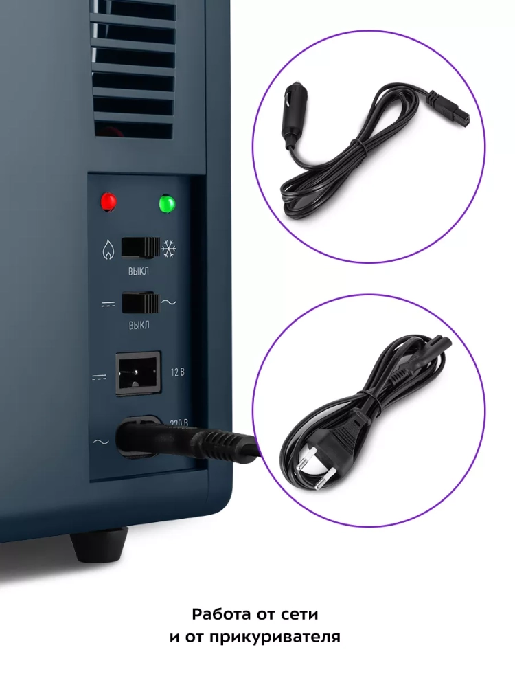Благодаря наличию сетевого и автомобильного шнура в комплекте вы можете использовать холодильник дома или взять его в поездку на машине.