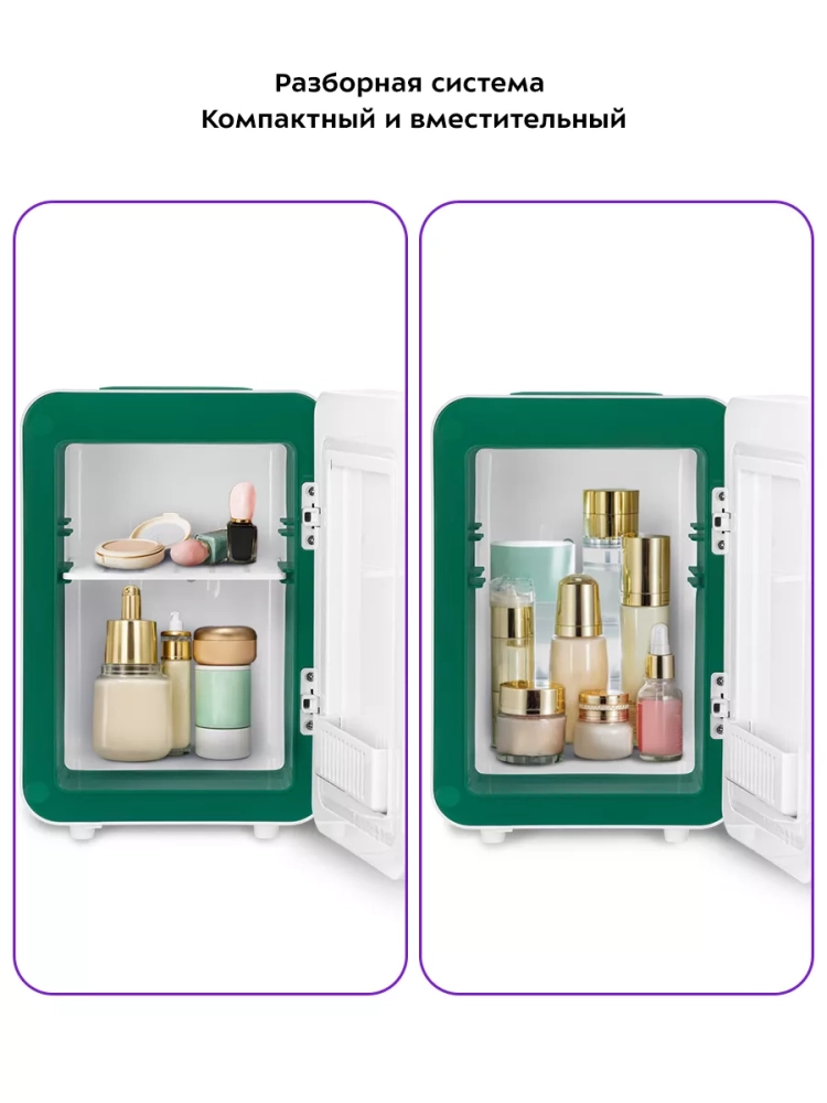 Благодаря наличию сетевого и автомобильного шнура в комплекте вы можете использовать холодильник дома или взять его в поездку на машине. Дверная полка и полка холодильной камеры позволят вам рассортировать косметику.