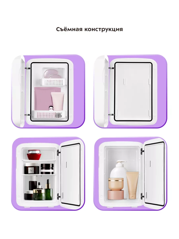 Благодаря наличию сетевого и автомобильного шнура в комплекте вы можете использовать холодильник дома или взять его в поездку на машине. Полки холодильной камеры и дверные полки позволят рассортировать косметику.