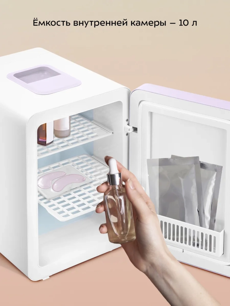 В холодильнике для косметики Kitfort KT-4110 поддерживается оптимальная температура для хранения косметических средств: кремов, сывороток, лосьонов, масок. Также у устройства есть режим нагрева, который подойдет, например, для разогрева восковых полосок, специальных масел или масок перед их использованием.