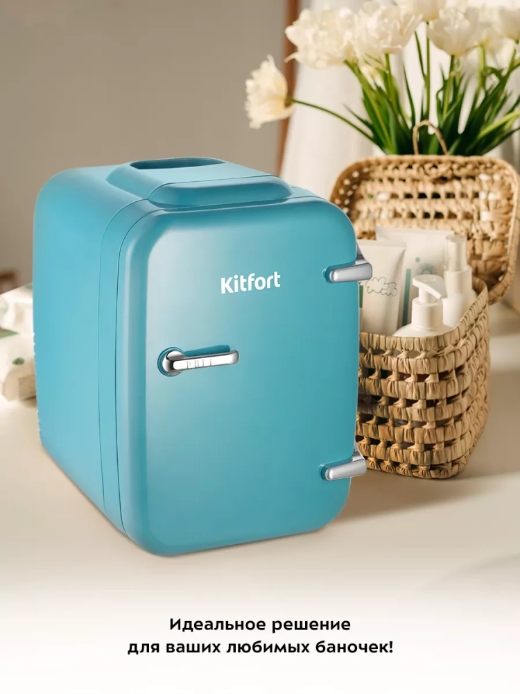 В холодильнике для косметики Kitfort KT-3163 поддерживается оптимальная температура для хранения косметических средств: кремов, сывороток, лосьонов, масок. Косметику необходимо хранить при температуре от 5 до 25 *С, оптимальной считается температура 10–18 *С. Также у устройства есть режим нагрева, который подойдет, например, для разогрева восковых полосок, специальных масел или масок перед их использованием. Благодаря наличию сетевого и автомобильного шнура в комплекте вы можете использовать холодильник дома или взять его в поездку на машине. Дверная полка и полка холодильной камеры позволят вам рассортировать косметику. Поддерживание постоянной температуры особенно важно для натуральной, органической косметики и косметики домашнего производства. Кроме того, в холодильнике рекомендуется хранить косметику с нестабильными витаминами, например, сыворотки и крема с витамином С. Также вы можете хранить в холодильнике лекарства и аптечные мази в соответствии с инструкцией на упаковке. Хранение в холодильнике средств, помогающих справиться с отечностью по утрам, усилит их косметическое действие благодаря приятному охлаждающему эффекту. С такой же целью рекомендуется хранить в холоде роликовые массажеры. Во время жаркой погоды вы можете убрать в холодильник освежающие спреи. Холодильник для косметики Китфорт KT-3163 легкий и обладает компактными размерами, так что вы сможете поставить его на туалетный столик или в ванную. Питание: от сети: ~220–240 В, 50/60 Гц; от прикуривателя: =12 В, 4 А. Мощность: 40 Вт. Класс защиты от поражения электрическим током: II. Температура охлаждения (ниже окружающей среды): 16–20 *С. Максимальная температура охлаждения: 0 *С. Температура нагрева: 50–60 *С. Температура не регулируется, холодильник работает в 2-х режимах: охлаждение и нагрев. Материал термоизоляции: пенополистирол. Энергопотребление: 394,2 кВт*ч/год. Длина сетевого шнура: 1,8 м. Длина автомобильного шнура: 2 м.