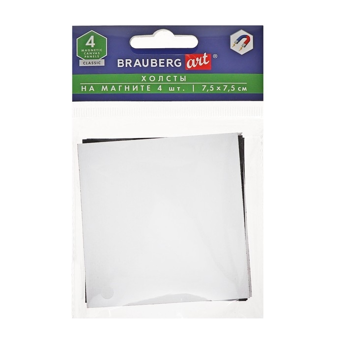 Холст на картоне с магнитои 7,5 х 7,5 см, хлопок 100%, акриловый грунт, набор 4 штуки, BRAUBERG