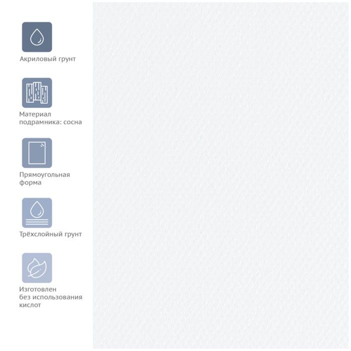 Холст на подрамнике, хлопок 100%, 1,6 х 70 х 90 см, акриловый грунт, среднезернистый, 380 г/м²