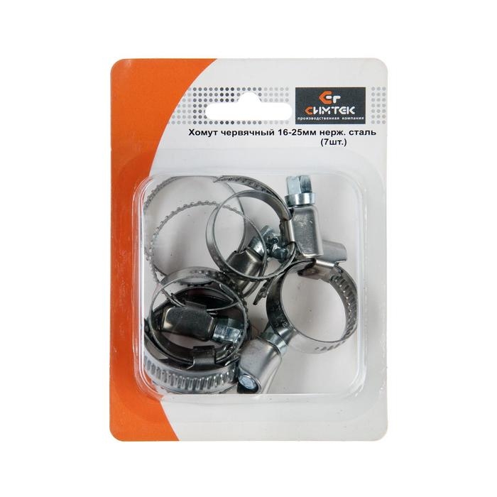 Хомут червячный "Симтек", диаметр 16-25 мм, нержавеющая сталь, в блистере, 7 шт.