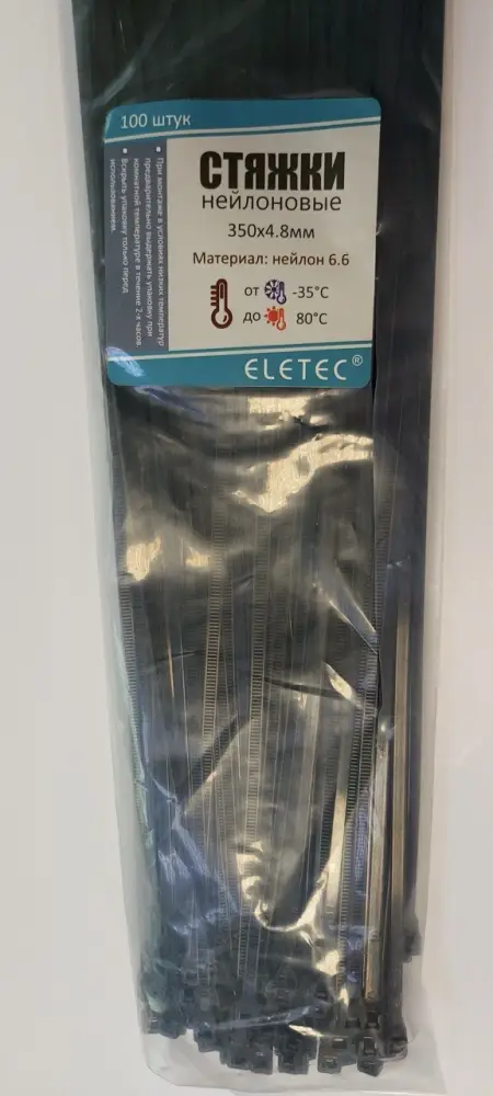 Хомут нейлоновый Eletec 350х4,8 черный (100 шт).