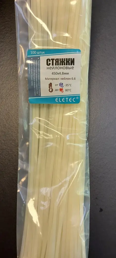 Хомут нейлоновый Eletec 450х4,8 бесцветный (100 шт).
