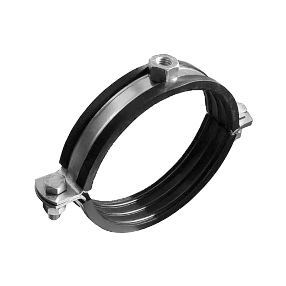 Трубный хомут высокой нагрузки используется для монтажа труб из стали и чугуна, а также в тех случаях, когда трубы имеют дополнительное оборудование или работают в условиях сильной вибрации. Хомут состоит из двух частей, имеет приваренный резьбовой шуруп и резиновый профиль, устойчивый к воздействию ультрафиолета, морской воды, атмосферных явлений. Уровень шумоизоляции соответствует DIN 4109, огнестойкость класса В2 - DIN 4102.