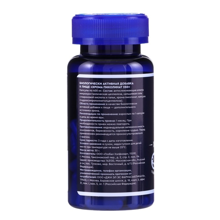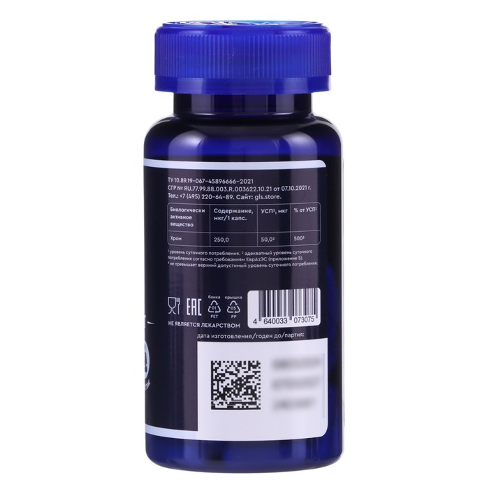 Хрома пиколинат 250 мкг GLS для похудения, 60 капсул по 400 мг