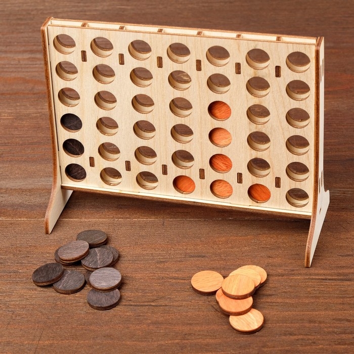 Игра рассчитана на 2 игроков. Один участник ходит светлыми, второй — тёмными фишками. Игроки встают по разным сторонам доски и по очереди заполняют слоты фишками своего цвета. Выигрывает тот, кто первым составил ряд из 4 фишек вертикально, горизонтально или по диагонали.