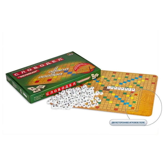 «Словодел «Великан» — игра на составление слов по принципу кроссворда. В отличие от классической версии эта предназначена для компании в 5–7 человек. Если же участников меньше, можно устроить «марафонскую» партию на большом поле или сыграть по обычным правилам, перевернув доску обратной стороной.