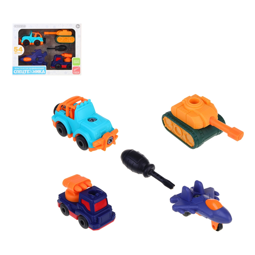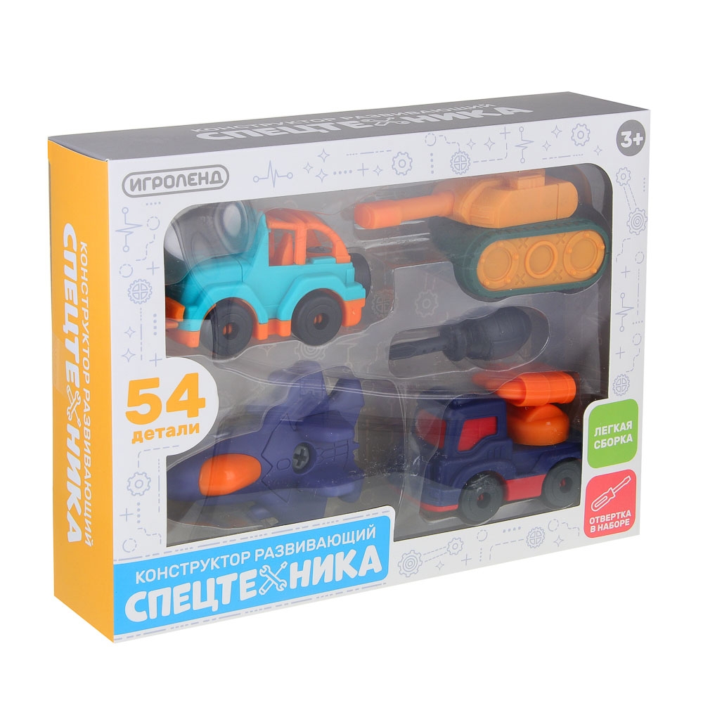 ИГРОЛЕНД Конструктор развивающий "Спецтехника" с отвертками, 54 детали, PP, 26х6,5х20 см