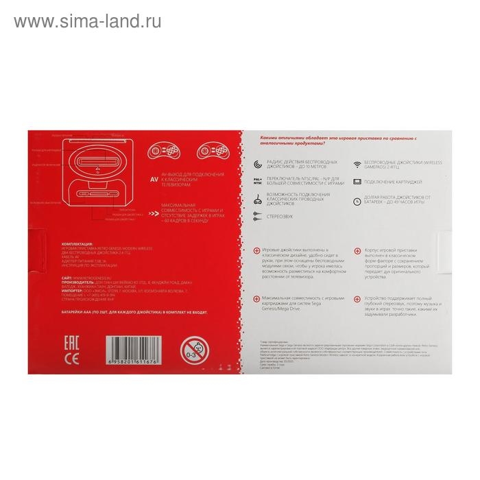 Игровая приставка Sega Retro Genesis Modern Wireless,16 Bit, 2 беспр. джойст.,170 игр,черная
