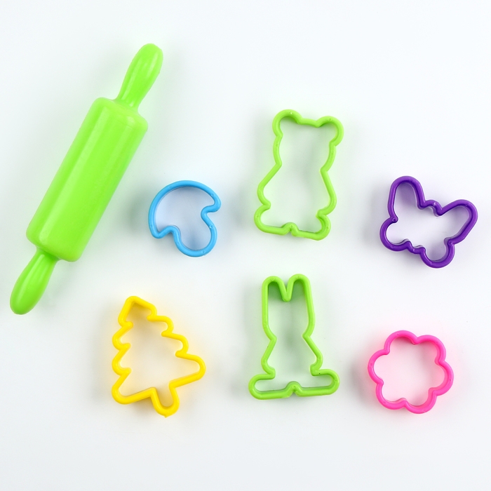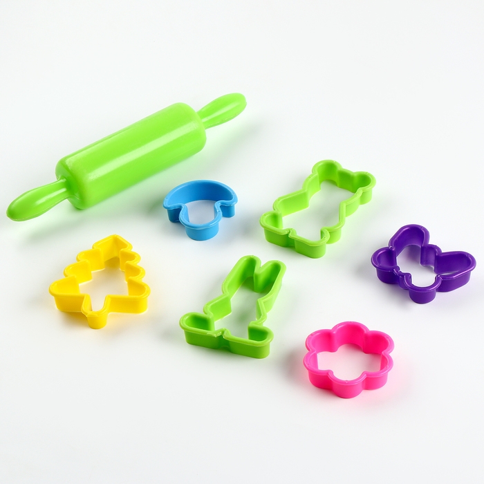 - В наборе 6 формочек и скалка.
