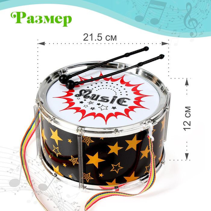 Игрушечный барабан, с палочками, на ленте, бумажная мембрана, размер: 15 × 15 × 7 см