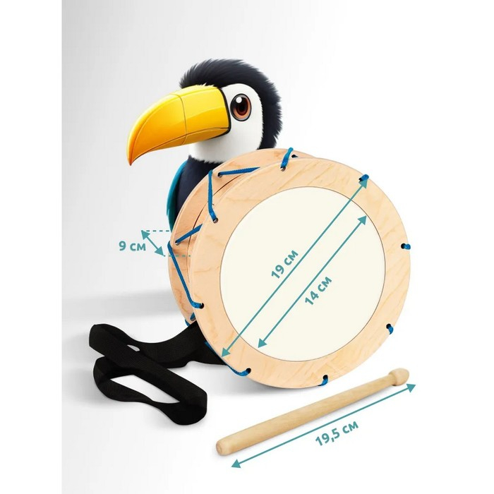 - На барабане есть ремешок, который можно повесить на шею, чтобы не держать игрушку в руках.