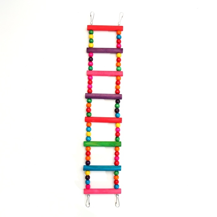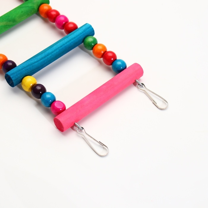 Игрушка для птиц "Лесенка с бусинами", 5 ступеней, 35 см, микс цветов