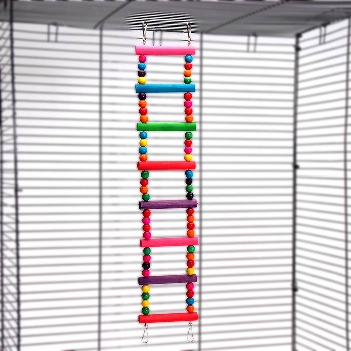 Игрушка для птиц" Лесенка с бусинками" 8 ступеней, микс цветов