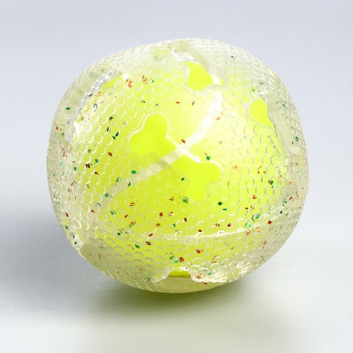 Игрушка для собак"Мяч теннис-косточки 2 в 1",TPR+винил,7,5 см, прозрачная/желтая неон