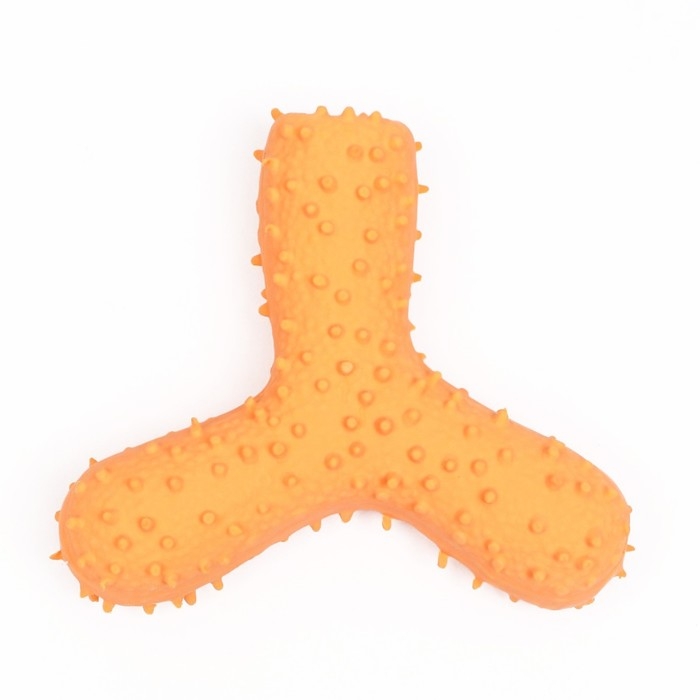 Игрушка пищащая для собак из латекса "Бумеранг", 12 см, жёлтая
